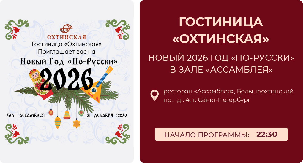 Рады пригласить Вас на «Новый год по-русски 2026» в гостинице «Охтинская».